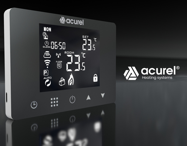 W przeciwieństwie do konwencjonalnych termostatów domowych, system termostatyczny Acurel AD116C posiada oddzielną i połączoną bezprzewodowo jednostkę sterującą (nadajnik) oraz jednostkę przełączającą (odbiornik). Jednostka przełączająca służy do podłączania do np. folii grzewczych, mat grzewczych, a przenośna jednostka sterująca służy do obsługi i ustawiania temperatury.