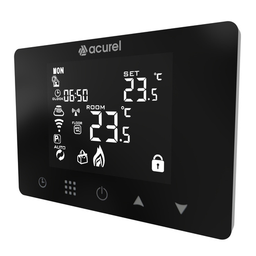 Termostat ten umożliwia dostosowanie różnej temperatury w sześciu interwałach czasowych jak i programowanie regulatora w trybie 7 dni, 6+1 dni, 5+2 dni dzięki czemu staje się idealnym narzędziem do stworzenia komfortu cieplnego na miarę Twojego domu oraz potrzeb Twojej rodziny. Termostat można przełączyć w tryb ręczny, w którym można ustawić tymczasową temperaturę poza programem.
