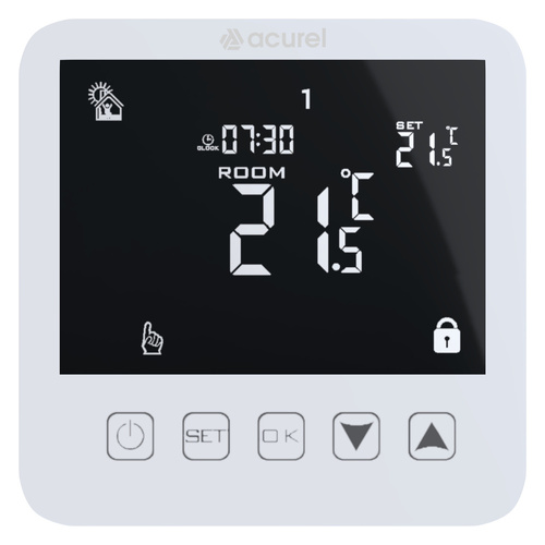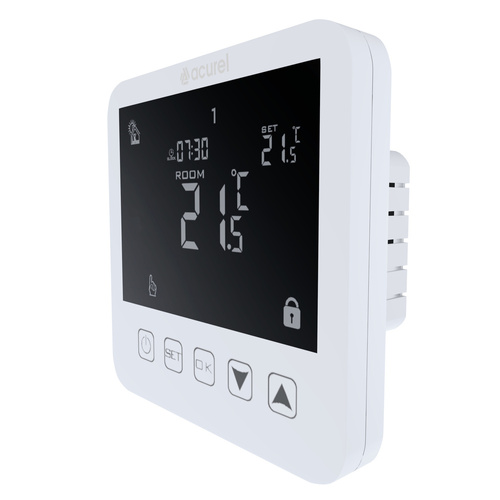 Termostat ten umożliwia dostosowanie różnej temperatury w sześciu interwałach czasowych jak i programowanie regulatora w trybie 7 dni, 6+1 dni, 5+2 dni dzięki czemu staje się idealnym narzędziem do stworzenia komfortu cieplnego na miarę Twojego domu oraz potrzeb Twojej rodziny. Termostat można przełączyć w tryb ręczny, w którym można ustawić tymczasową temperaturę poza programem.