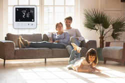 Manualny termostat przewodowy stosowany do ogrzewania podłogowego, folii grzewczych, paneli grzewczych, mat grzewczych, kabli grzewczych.