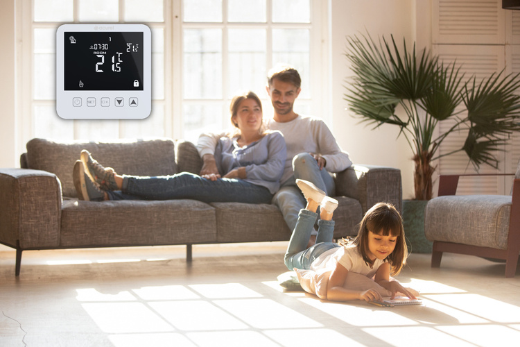 Termostat może pracować tylko z czujnikiem powietrza, tylko z czujnikiem podłogowym, albo z dwoma czujnikami jednocześnie. W przypadku zastosowania termostatu w ogrzewaniu podłogowym (szczególnie z okładzinami drewnianymi) regulator załącza system grzewczy w celu uzyskania zadanej temperatury w pomieszczeniu, jednocześnie nie pozwalając na przekroczenie ustawionej temperatury podłogi zabezpieczając tym samym podłogę przed przegrzaniem.