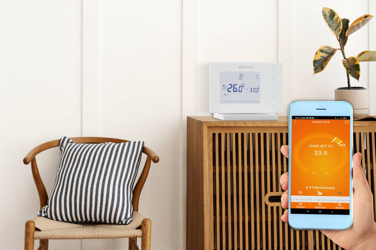 Acurel AD118-WIFI to nowoczesny, bezprzewodowy termostat pokojowy wyposażony w łączność radiową (RF) oraz moduł Wi-Fi, przeznaczony do sterowania temperaturą w systemach centralnego ogrzewania. Urządzenie umożliwia zdalne zarządzanie ogrzewaniem za pomocą aplikacji mobilnej, co przekłada się na wysoki komfort użytkowania i realne oszczędności energii. Termostat został zaprojektowany z myślą o łatwej integracji z listwą sterującą AD117, z którą współpracuje bezprzewodowo, umożliwiając uruchamianie lub wyłączanie poszczególnych stref grzewczych. AD118 to idealne rozwiązanie dla osób poszukujących inteligentnego, wygodnego i energooszczędnego sposobu kontroli temperatury w domu.