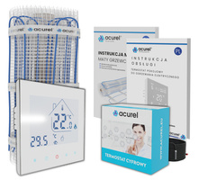 • Zestaw montażowy maty grzewczej ACUREL dedykowany do jednego pomieszczenia. Wielkość zestawu dobierz do powierzchni użytkowej pomieszczenia.