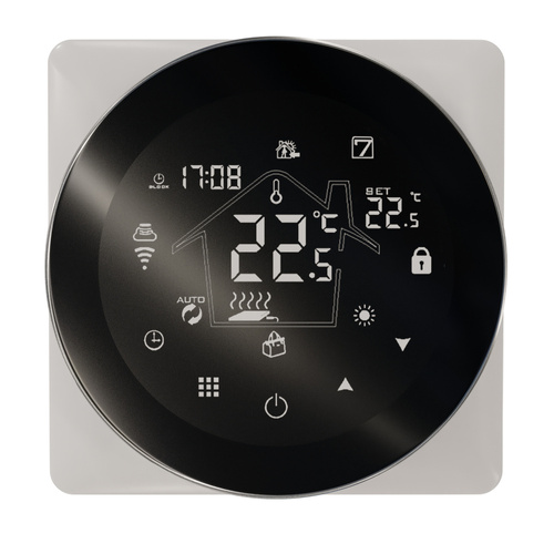 Termostat ten umożliwia dostosowanie różnej temperatury w sześciu interwałach czasowych jak i programowanie regulatora w trybie 7 dni, 6+1 dni, 5+2 dni dzięki czemu staje się idealnym narzędziem do stworzenia komfortu cieplnego na miarę Twojego domu oraz potrzeb Twojej rodziny. Termostat można przełączyć w tryb ręczny, w którym można ustawić tymczasową temperaturę poza programem.