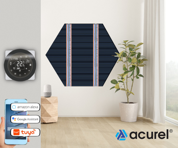Regulator posiada wbudowany czujnik temperatury powietrza oraz możliwość podłączenia zewnętrznego czujnika temperatury podłogi dołączonego do zestawu. Termostat może kontrolować temperaturę w pomieszczeniu oraz niezależnie kontrolować temperaturę podłogi.