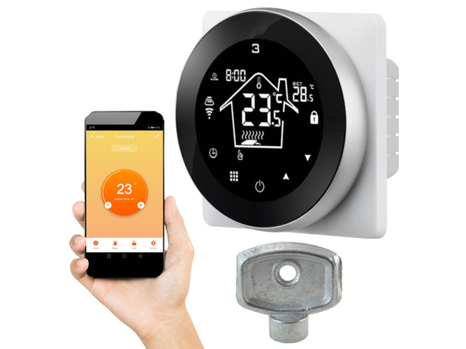 Dotykowy Termostat Sterownik 24/7 Pokojowy 3A + metalowy kluczyk do odpowietrznika