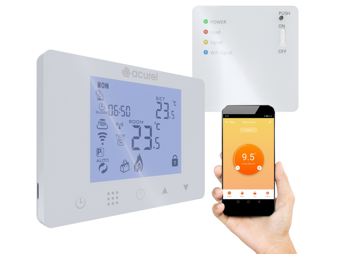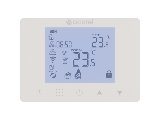 Termostat pokojowy Acurel AD115 to zaawansowany sterownik beznapięciowy z funkcją WiFi, przeznaczony do kontroli pracy kotłów centralnego ogrzewania. Dzięki współpracy z aplikacją Tuya Smart zapewnia zdalne sterowanie temperaturą z każdego miejsca na świecie – z poziomu telefonu lub tabletu.