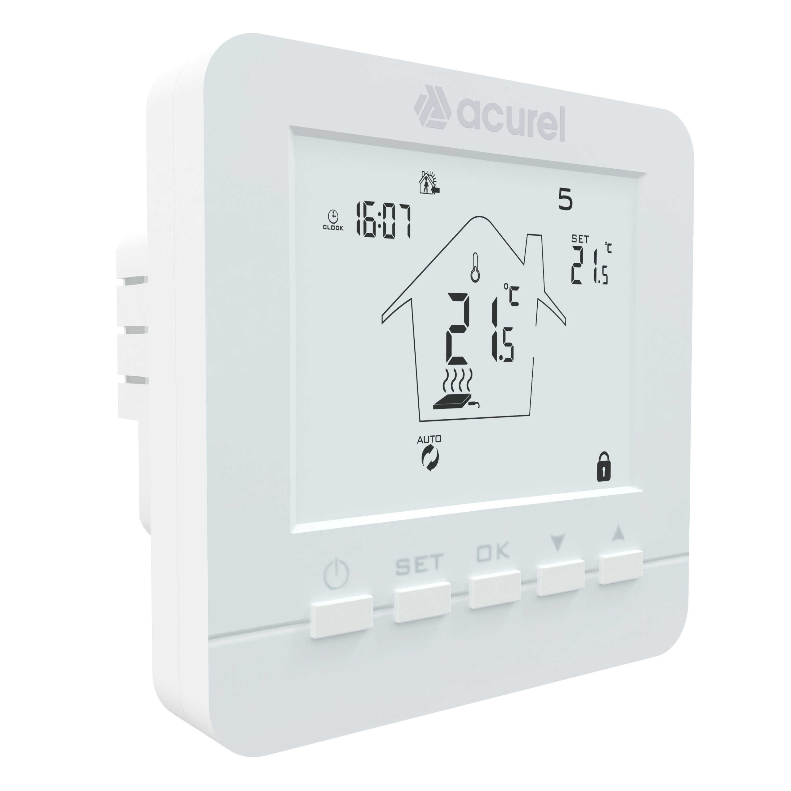 Termostat ten umożliwia dostosowanie różnej temperatury w sześciu interwałach czasowych jak i programowanie regulatora w trybie 7 dni, 6+1 dni, 5+2 dni dzięki czemu staje się idealnym narzędziem do stworzenia komfortu cieplnego na miarę Twojego domu oraz potrzeb Twojej rodziny. Termostat można przełączyć w tryb ręczny, w którym można ustawić tymczasową temperaturę poza programem.