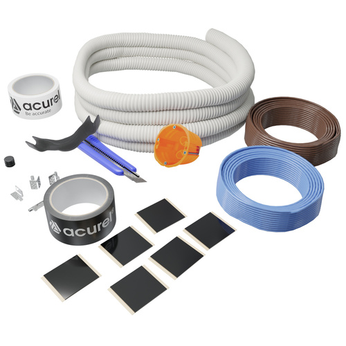 Zestaw z folią grzewczą marki Acurel z serii AC-P wraz z akcesoriami montażowymi przeznaczony jest do prawidłowego montażu elektrycznego ogrzewania płaszczyznowego na podczerwień. Zestaw zawiera szczegółową instrukcją montażu, która pozwoli profesjonalnie i bezproblemowo wykonać instalację.