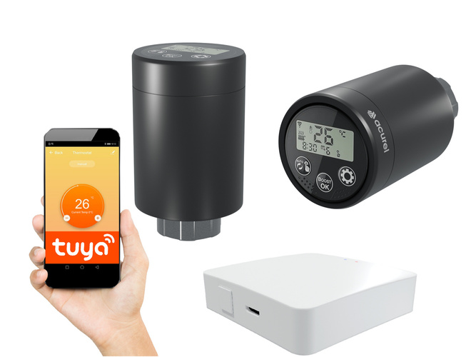 Aby móc w pełni użytkować urządzenie konieczny jest zakup zestawu startowego (głowica + centralka). Centralka umożliwia korzystanie ze wszystkich funkcji głowicy oraz odpowiada za łączność między nimi a również jest kompatybilna z innymi urządzeniami Tuya.