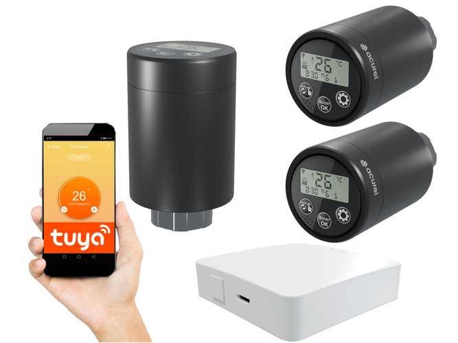 Aby móc w pełni użytkować urządzenie konieczny jest zakup zestawu startowego (głowica + centralka). Centralka umożliwia korzystanie ze wszystkich funkcji głowicy oraz odpowiada za łączność między nimi a również jest kompatybilna z innymi urządzeniami Tuya.