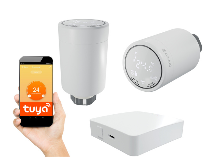 Aby móc w pełni użytkować urządzenie konieczny jest zakup zestawu startowego (głowica + centralka). Centralka umożliwia korzystanie ze wszystkich funkcji głowicy oraz odpowiada za łączność między nimi a również jest kompatybilna z innymi urządzeniami Tuya.