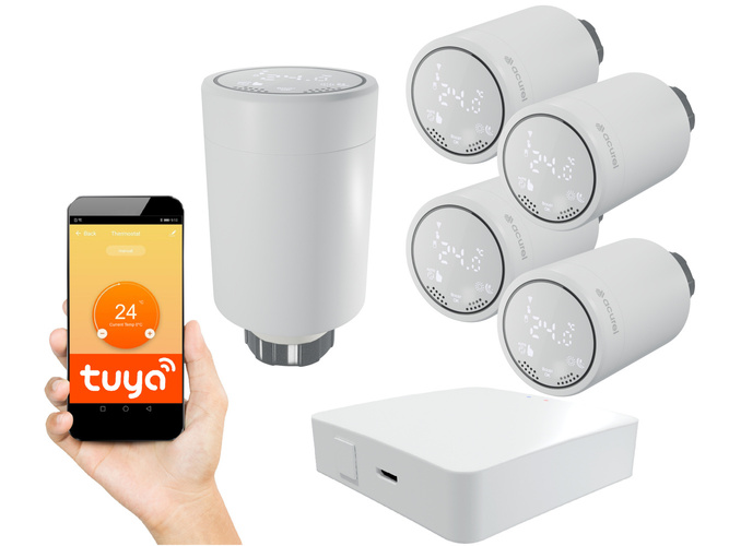 Aby móc w pełni użytkować urządzenie konieczny jest zakup zestawu startowego (głowica + centralka). Centralka umożliwia korzystanie ze wszystkich funkcji głowicy oraz odpowiada za łączność między nimi a również jest kompatybilna z innymi urządzeniami Tuya.