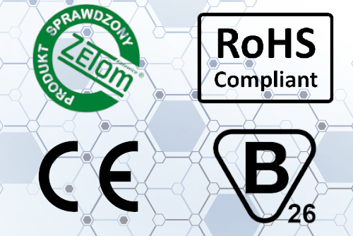 Folia grzewcza została poddana szczegółowym badaniom oraz atestacji przeprowadzonej przez Zakład Badań i Atestacji „ZETOM” w Katowicach Sp. z o.o., uznaną jednostkę certyfikującą w Polsce. W rezultacie produkt uzyskał certyfikat B26, potwierdzający jego wysoką jakość, trwałość, bezpieczeństwo użytkowania oraz zgodność z obowiązującymi przepisami na rynku docelowym. Ponadto folia posiada oznaczenie CE, zgodne z dyrektywami Unii Europejskiej, takimi jak 2014/30/EU (Dyrektywa Kompatybilności Elektromagnetycznej) oraz 2014/35/EU (Dyrektywa Niskonapięciowa). Produkt spełnia również wymogi Dyrektywy RoHS (2011/65/EU), dotyczącej ograniczenia stosowania niebezpiecznych substancji w sprzęcie elektrycznym i elektronicznym, co dodatkowo podkreśla jego bezpieczeństwo i ekologiczną zgodność.