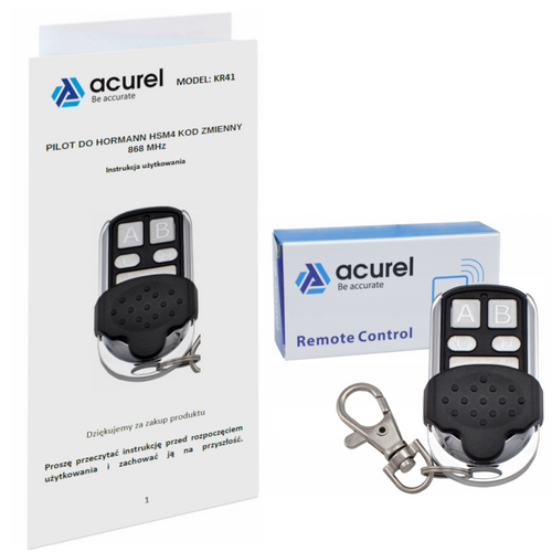 - Pilot 4-kanałowy, działający w częstotliwości 868 Mhz. Zamiennik pilota Hormann HSM4.