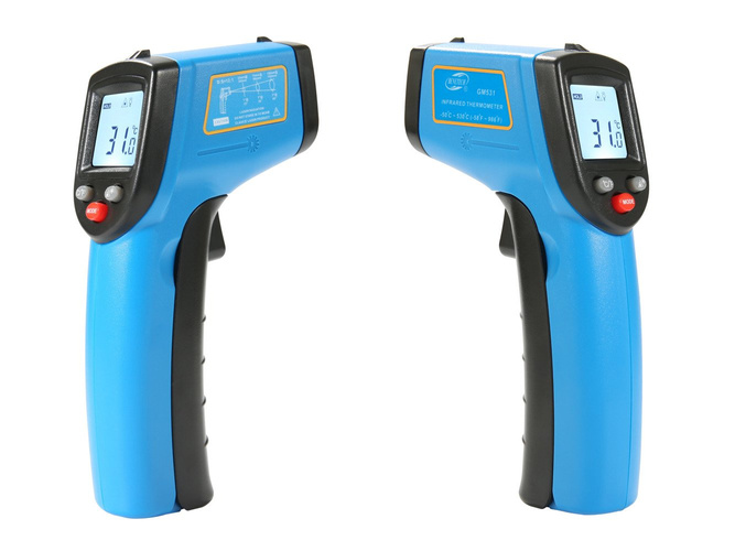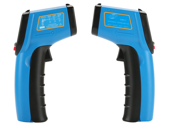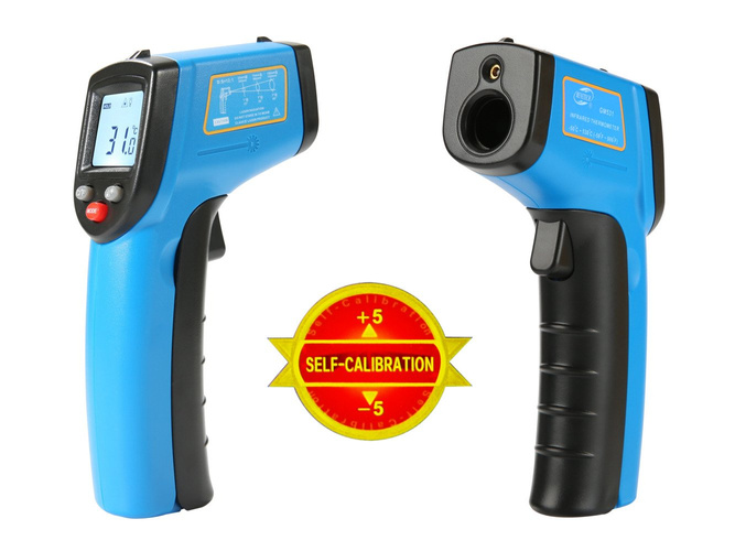- Pirometr laserowy z możliwością ręcznej kalibracji. Urządzenie charakteryzuje się bardzo wysokim zakresem temperaturowym (-50 ~ +530°C) oraz precyzją pomiaru, prostą obsługą, a także nowoczesną i ergonomiczną obudową.