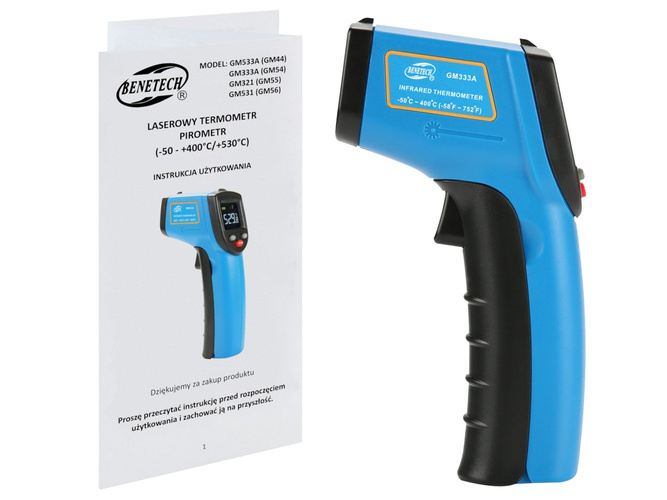 Bezdotykowy termometr pirometr laserowy -50 ~ 400°C z kolorowym LCD Benetech GM333A
