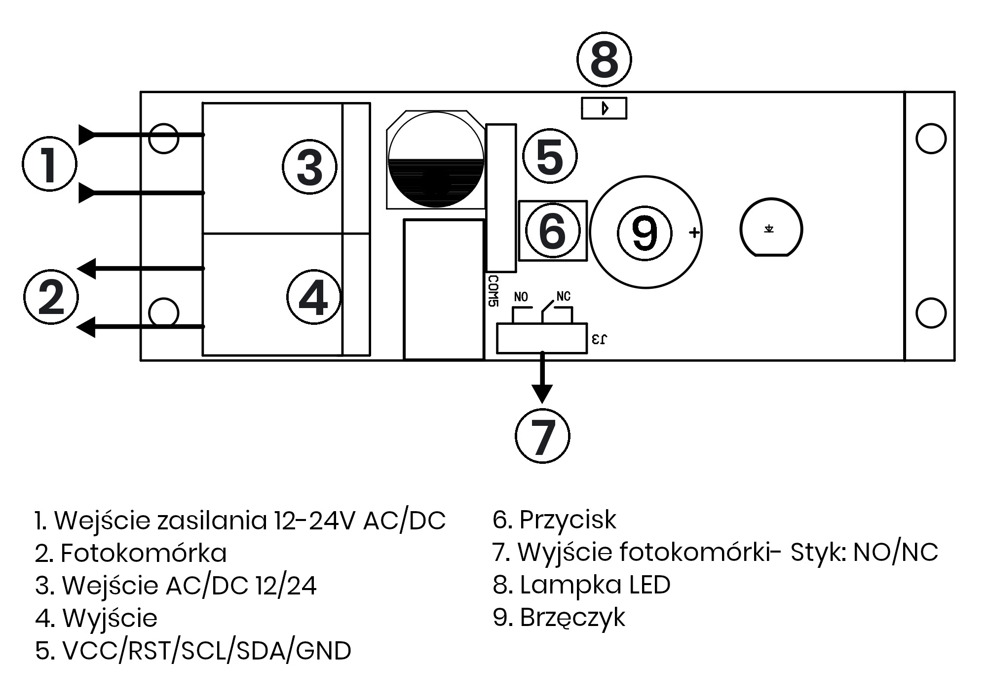 Schemat podłączenia fotokomórki: