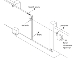 Zestaw składa się z nadajnika, odbiornika i elementów montażowych.
