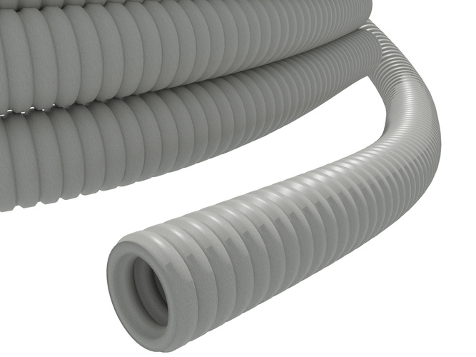 Karbowany peszel giętki z PCV typ 320N bez pilota. Peszel ochronny do przewodów elektrycznych jak i zewnętrznego czujnika temperatury znajdzie zastosowanie w instalacjach elektrycznego ogrzewania foliami i matami grzewczymi. Peszel chroni przewody zasilające i czujnik przed uszkodzeniami mechanicznymi oraz umożliwia wymianę uszkodzonego czujnika podłogowego na nowy bez ingerencji w podłoże.